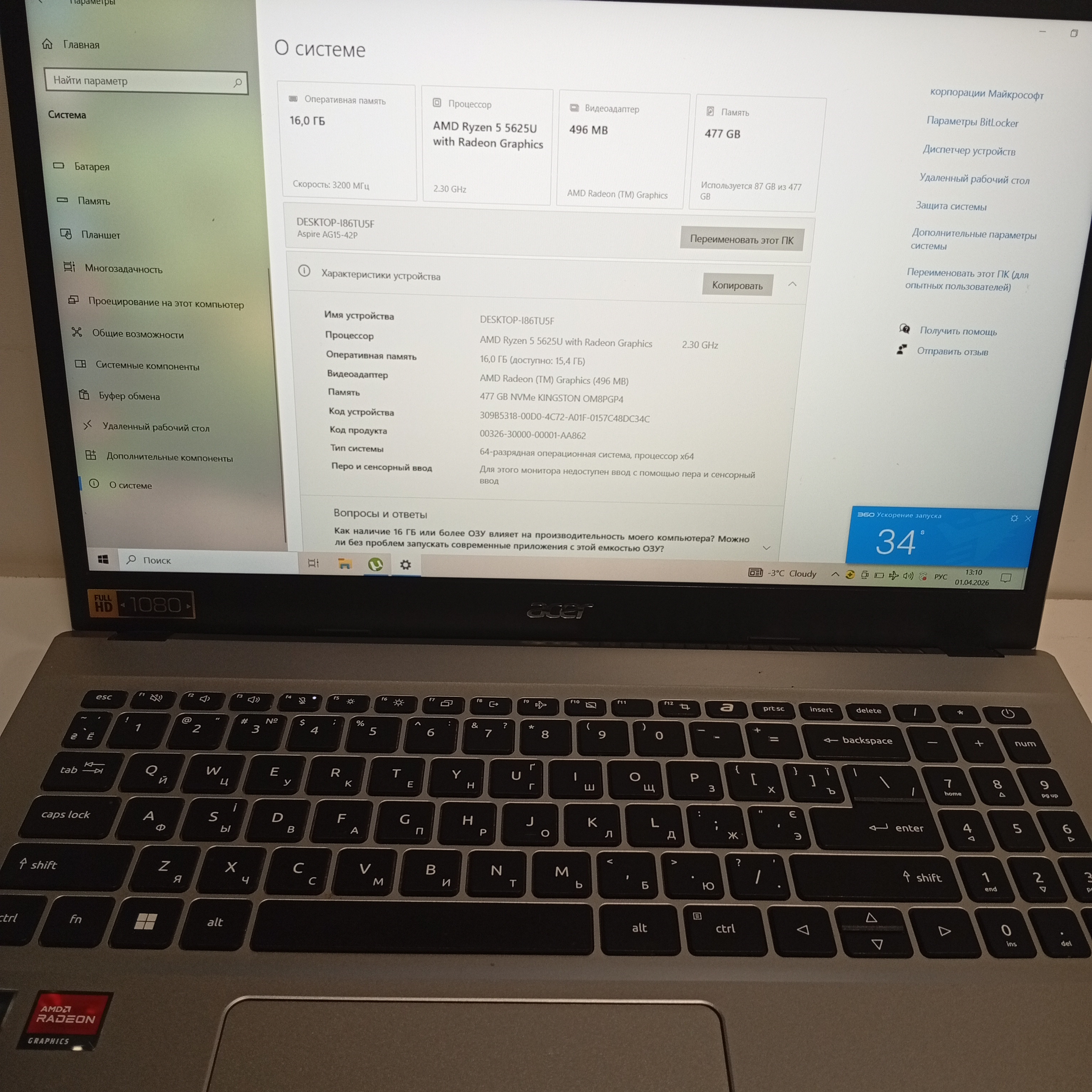 - Procesor Video Integrat: AMD Ryzen5 5625U