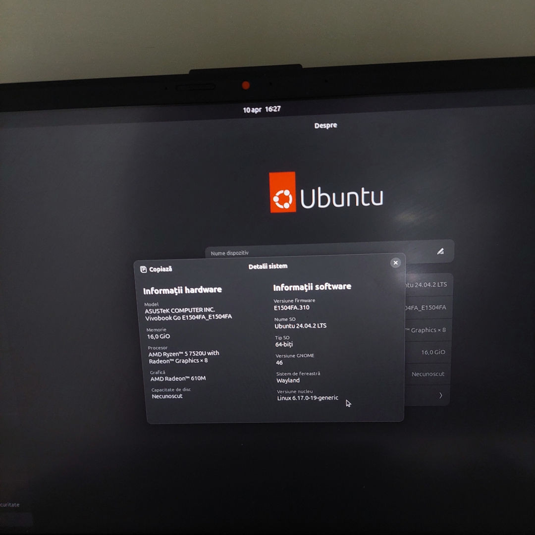 - Procesor Video Integrat: AMD Ryzen 5 7520u