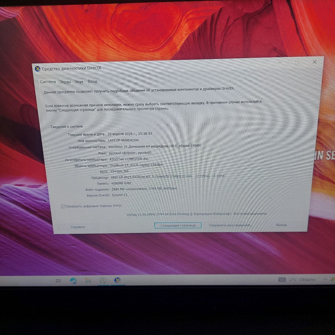 - Model: Asus X540B