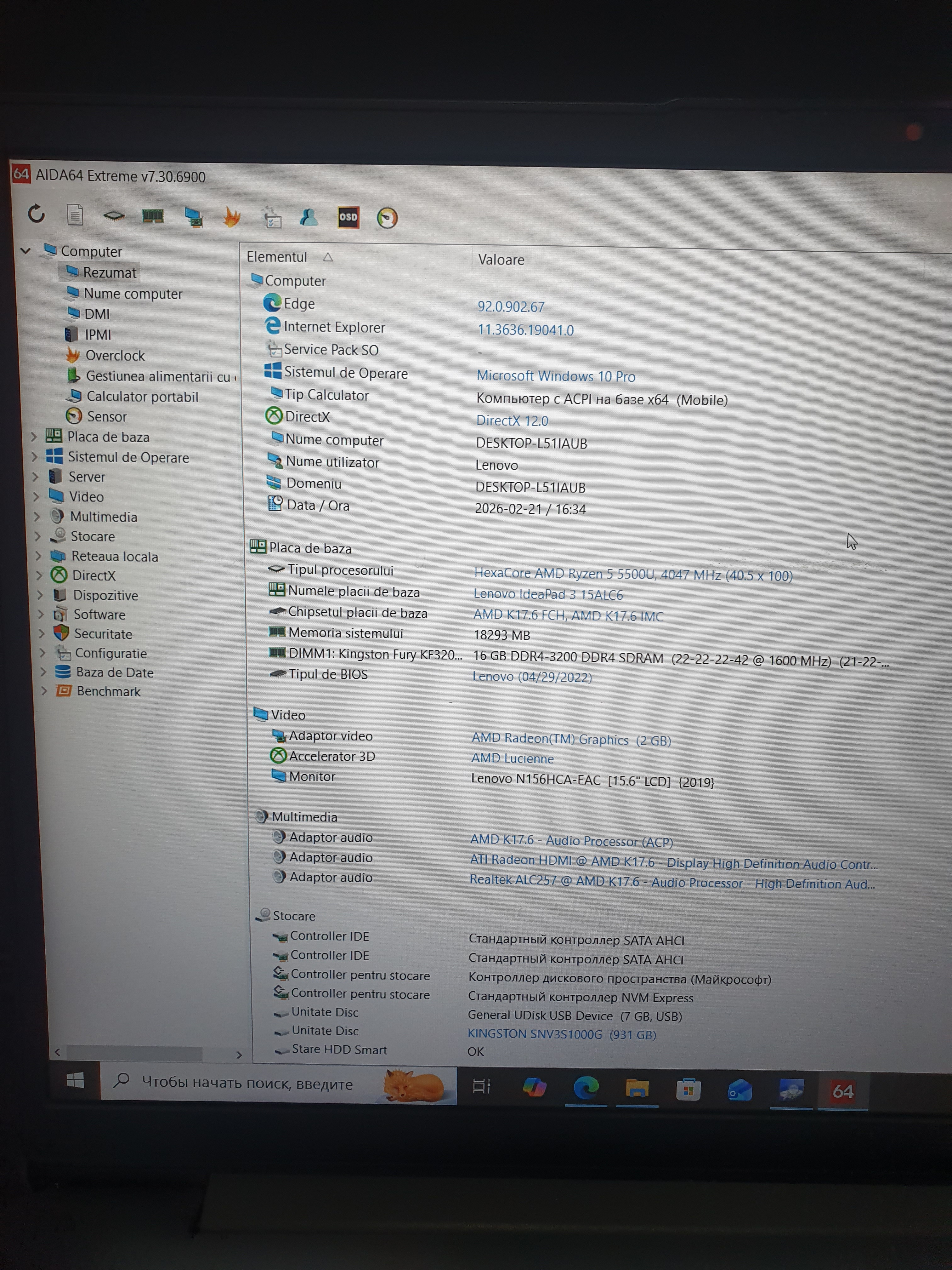 - Procesor Video Integrat: AMD Ryzen 5 5500U