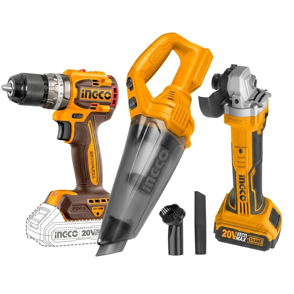 - Set Ingco Surubelnita fara fir,Polizor Unghiular ,Aspirator