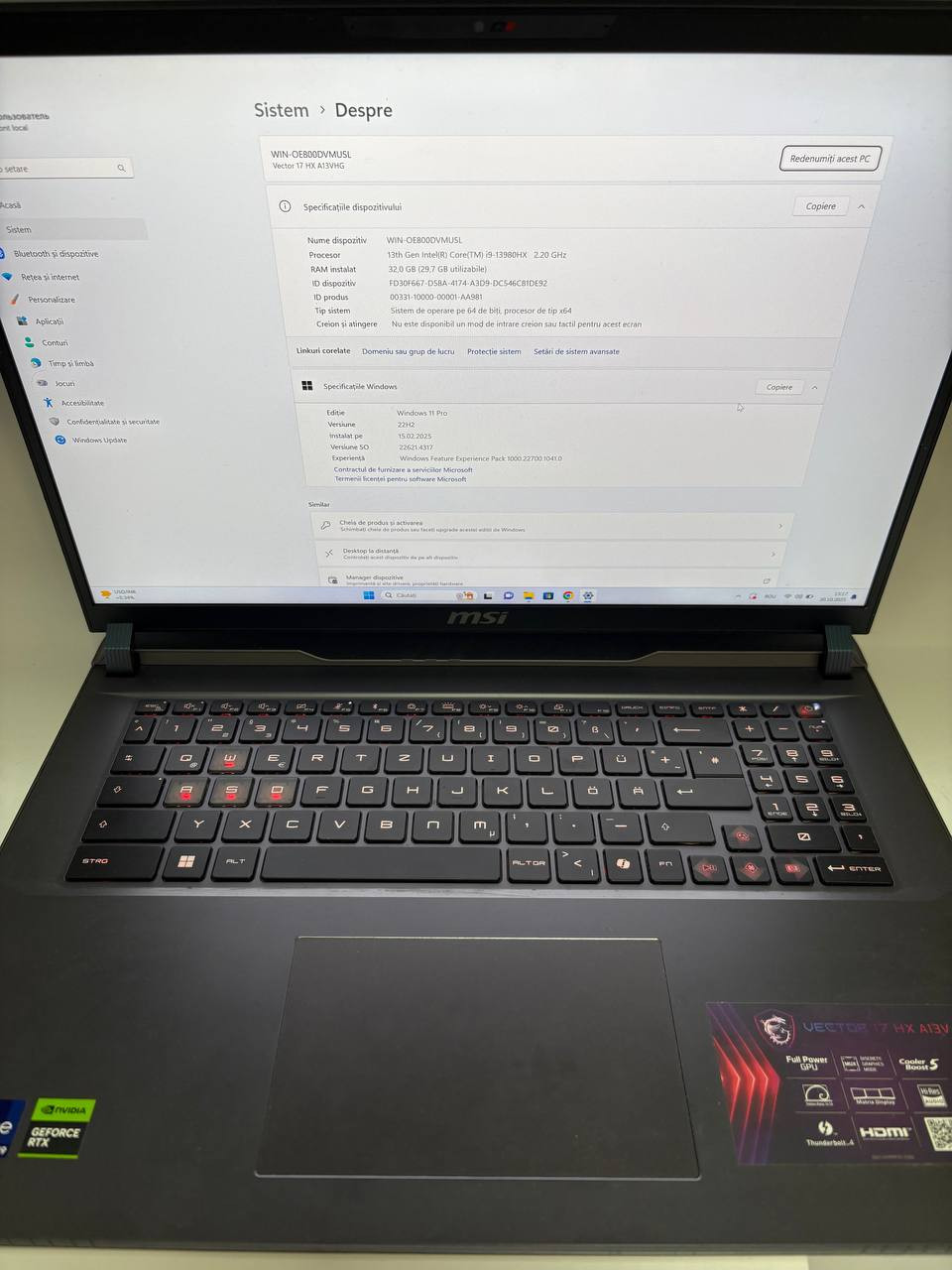 Laptop MSI Vector I7 HX A13V